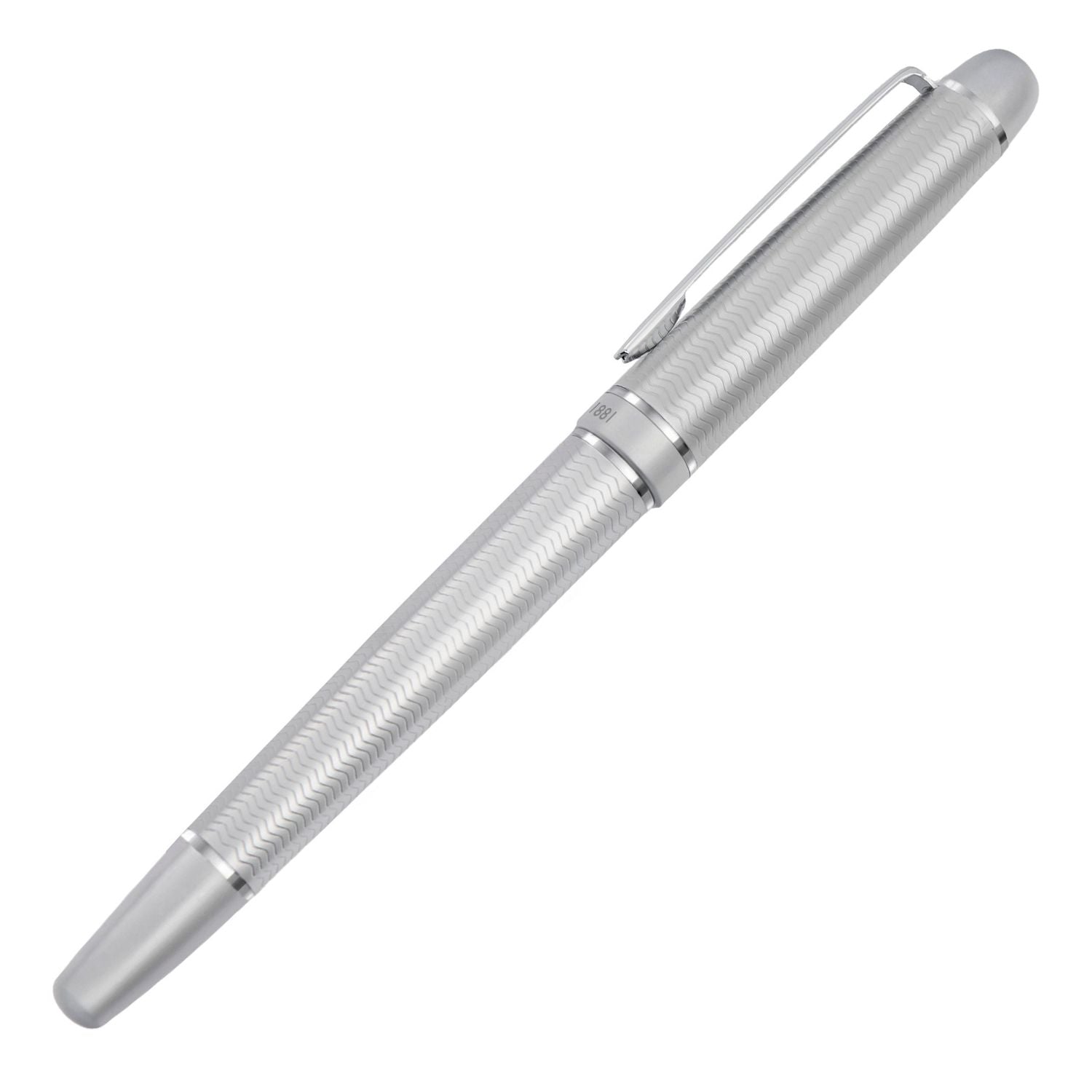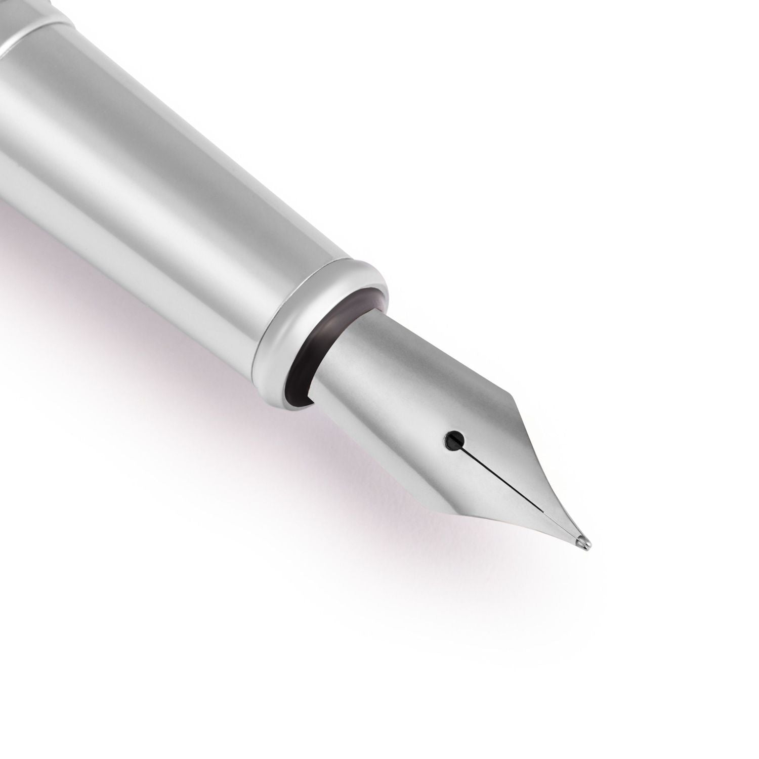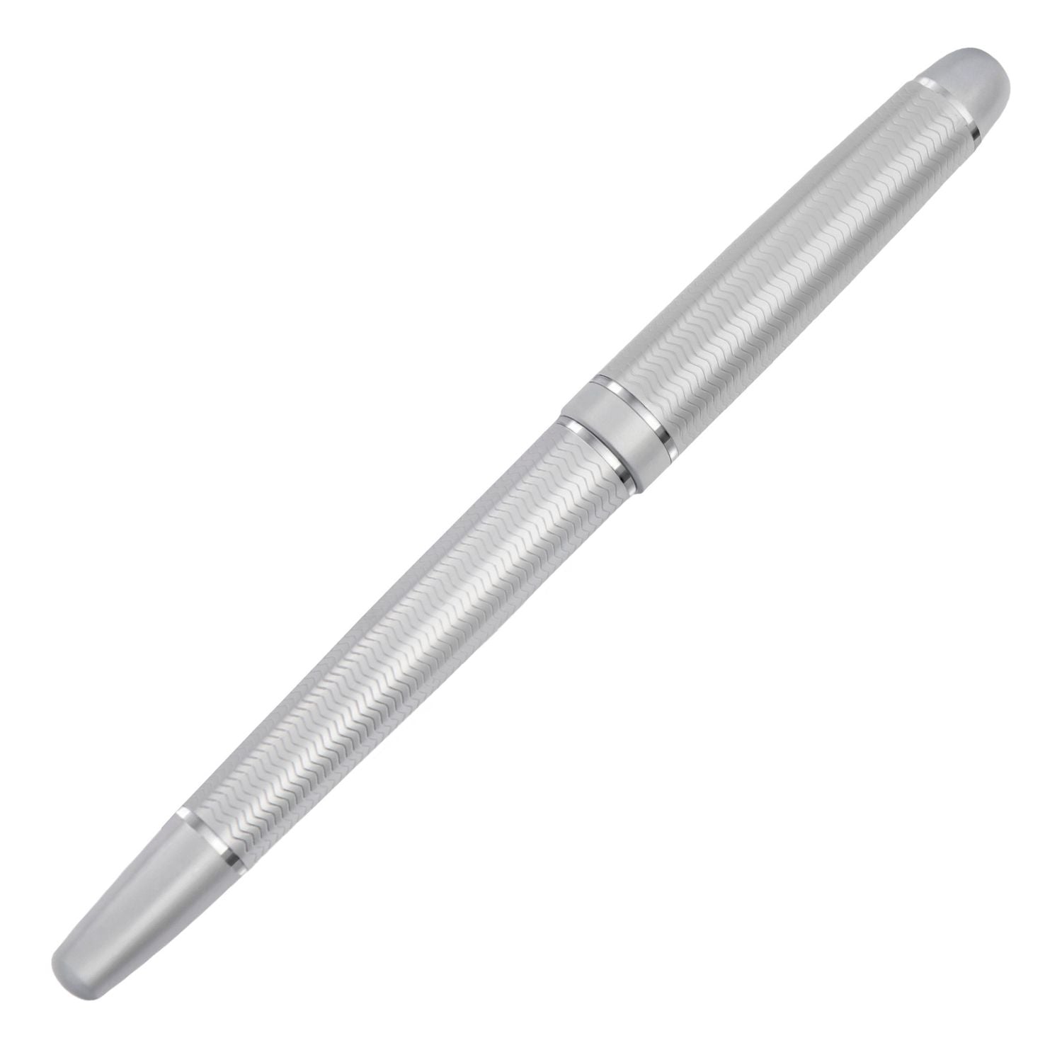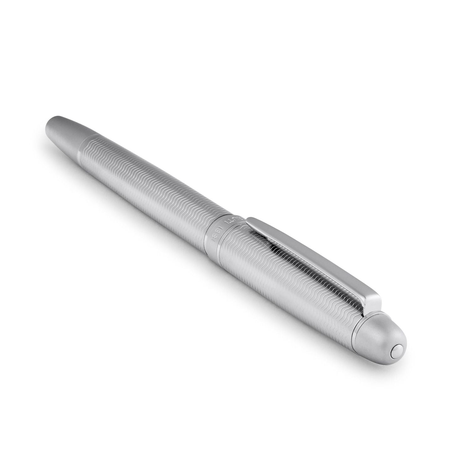 Mit seiner klassischen Form und der Chevron-Gravur auf der Oberfläche, die an die gleichnamige Taschenlinie erinnert, verbindet dieser ganz in Silber gehaltene Füllfederhalter zeitlose Eleganz mit moderner Raffinesse. Der Kontrast zwischen dem matten und dem glänzenden Silber des Mittelrings und der Zierteile unterstreicht seine Raffinesse und bietet Premium-Qualität zu einem günstigen Preis.