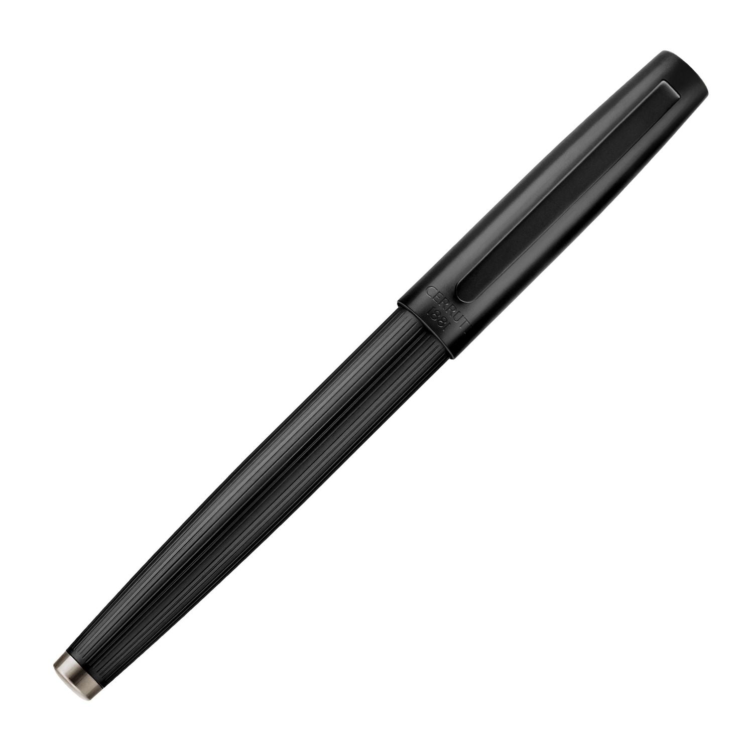 The Cerruti 1881 matte black fountain pen embodies modern luxurious minimalism with a smooth cap engraved with the new two-row Cerruti 1881 logo and a pinstripe-engraved lower barrel. Finished in matte black, it delivers a bold, understated interpretation of classical writing.
