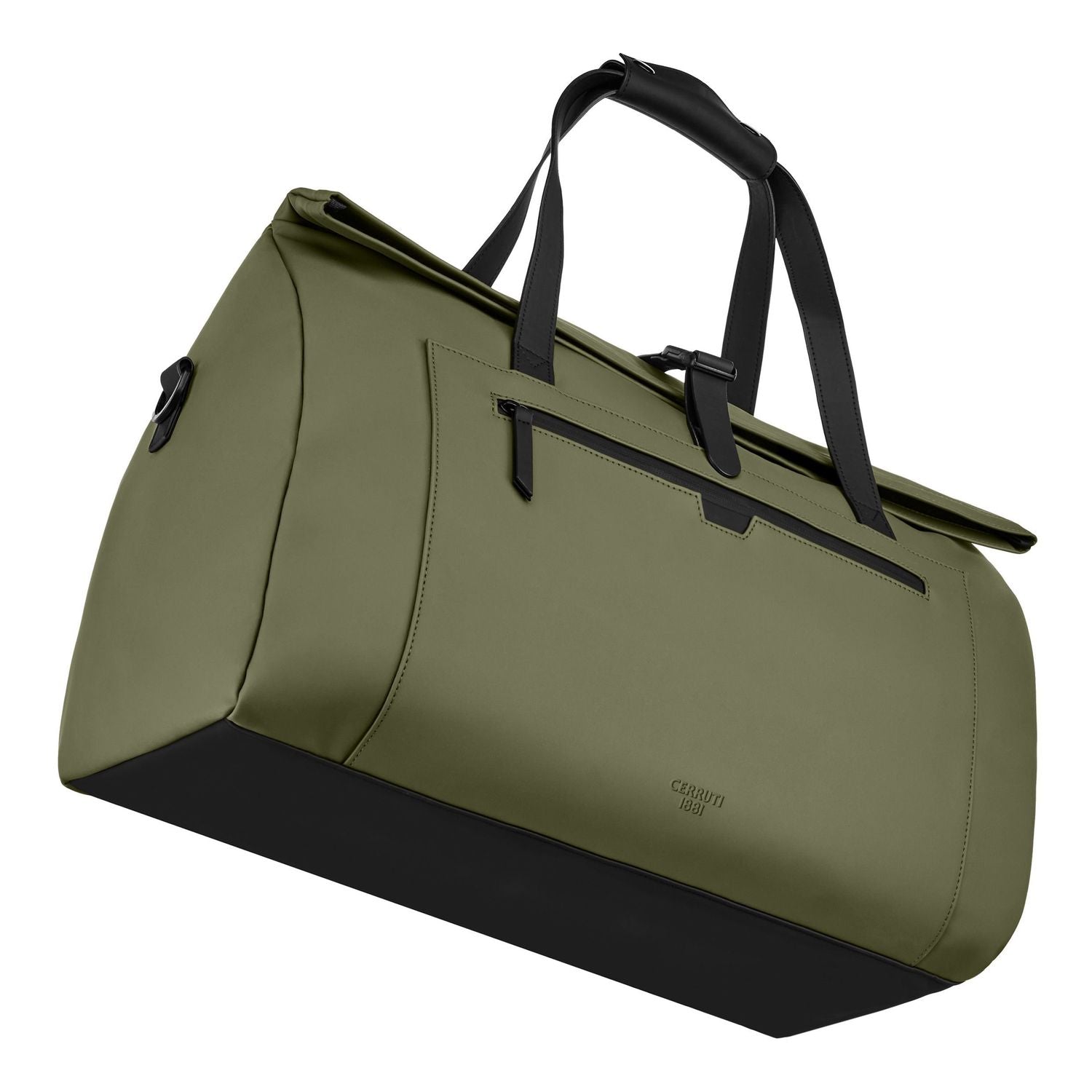 Designed with form as much as function in mind, this casual-inspired weekend bag is offered in a refined khaki green, contrasted with elegant black matte details. A subtle utilitarian aesthetic is expressed through its rolled-top closing construction, perfectly finished with an integrated magnetic closure engraved with the RR signature. The silhouette is light and roamy, created for effortless movement and everyday escape. A flat pocket to the front ensures easy access, while the detachable webbing strap allows adaptable carry. Inside, a spacious roamy interior reveals a refined monogram lining, finished with a zipped inner pocket for secure organization. It is the perfect accessory for someone with a minimalist yet casual and modern aesthetic.