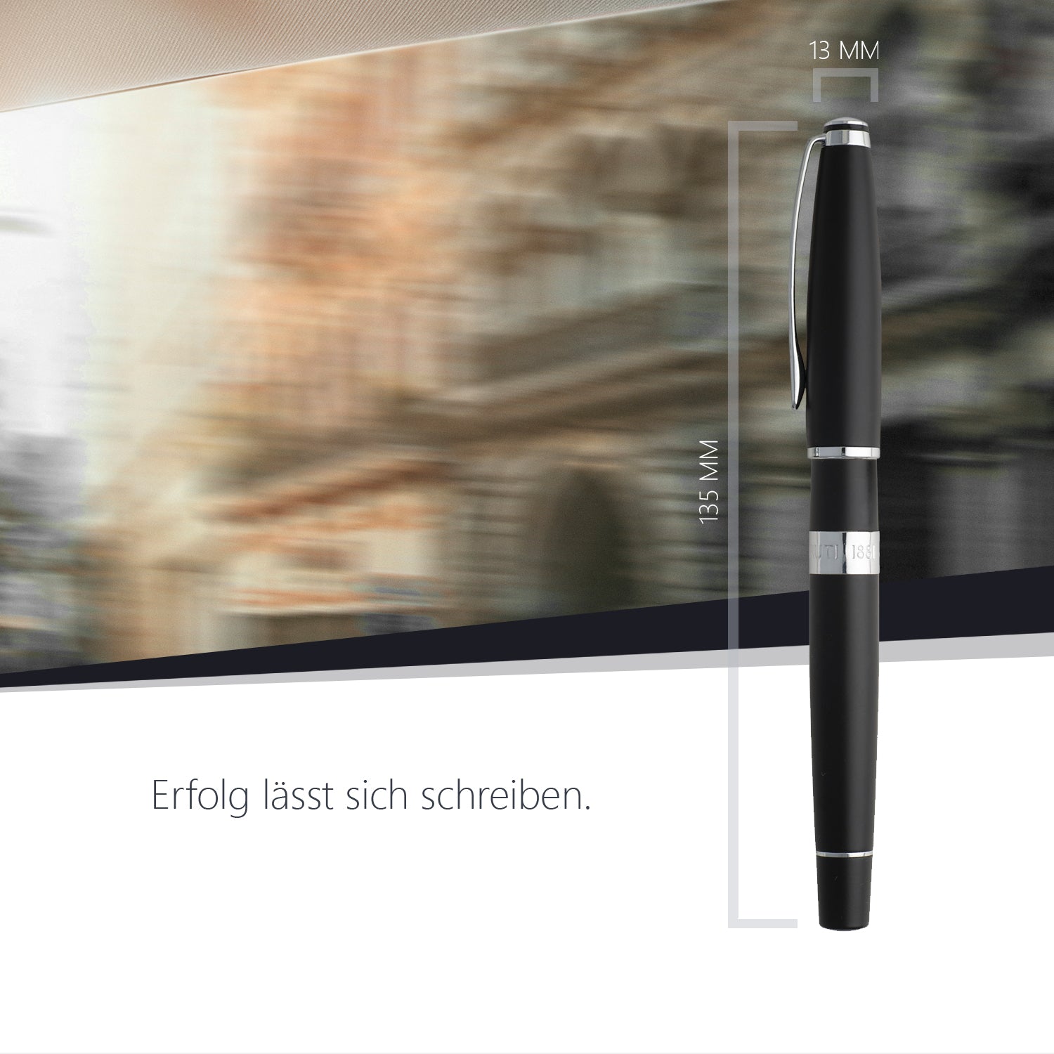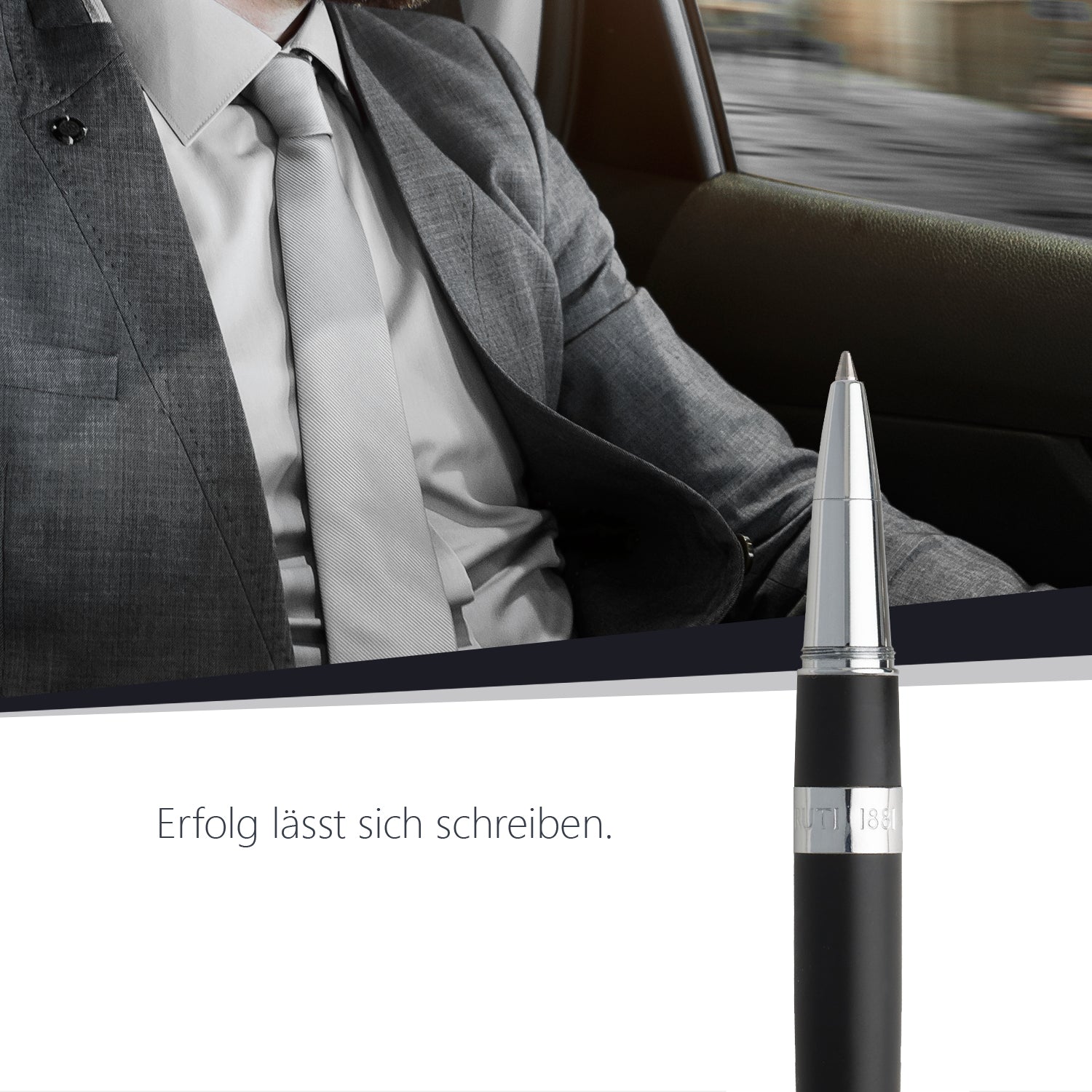 Diese neue Version des Bicolore Tintenrollers ist maskulin und modern. Der mattschwarz lackierte Körper subtil kombiniert mit glänzend verchromten Beschlägen bietet einen zeitgemäßen Look.