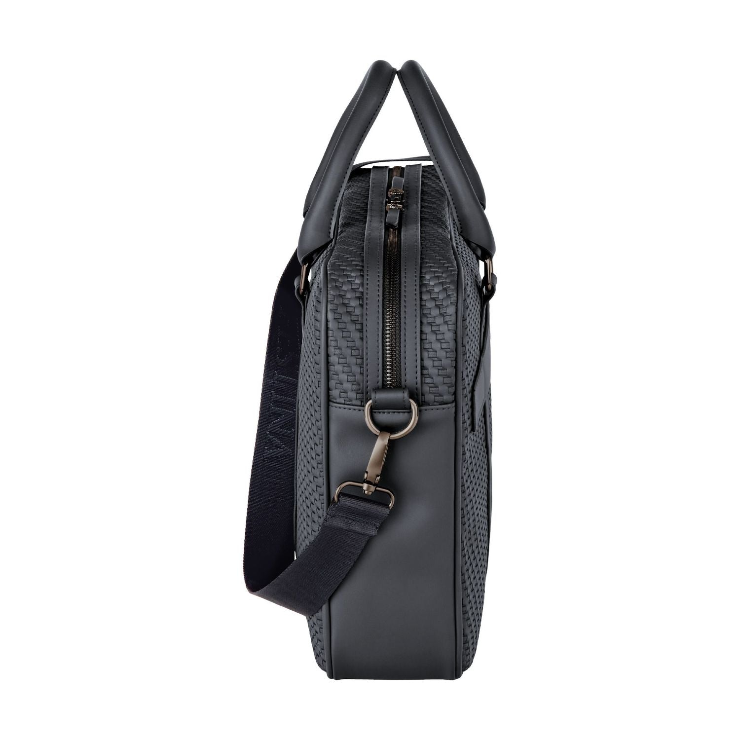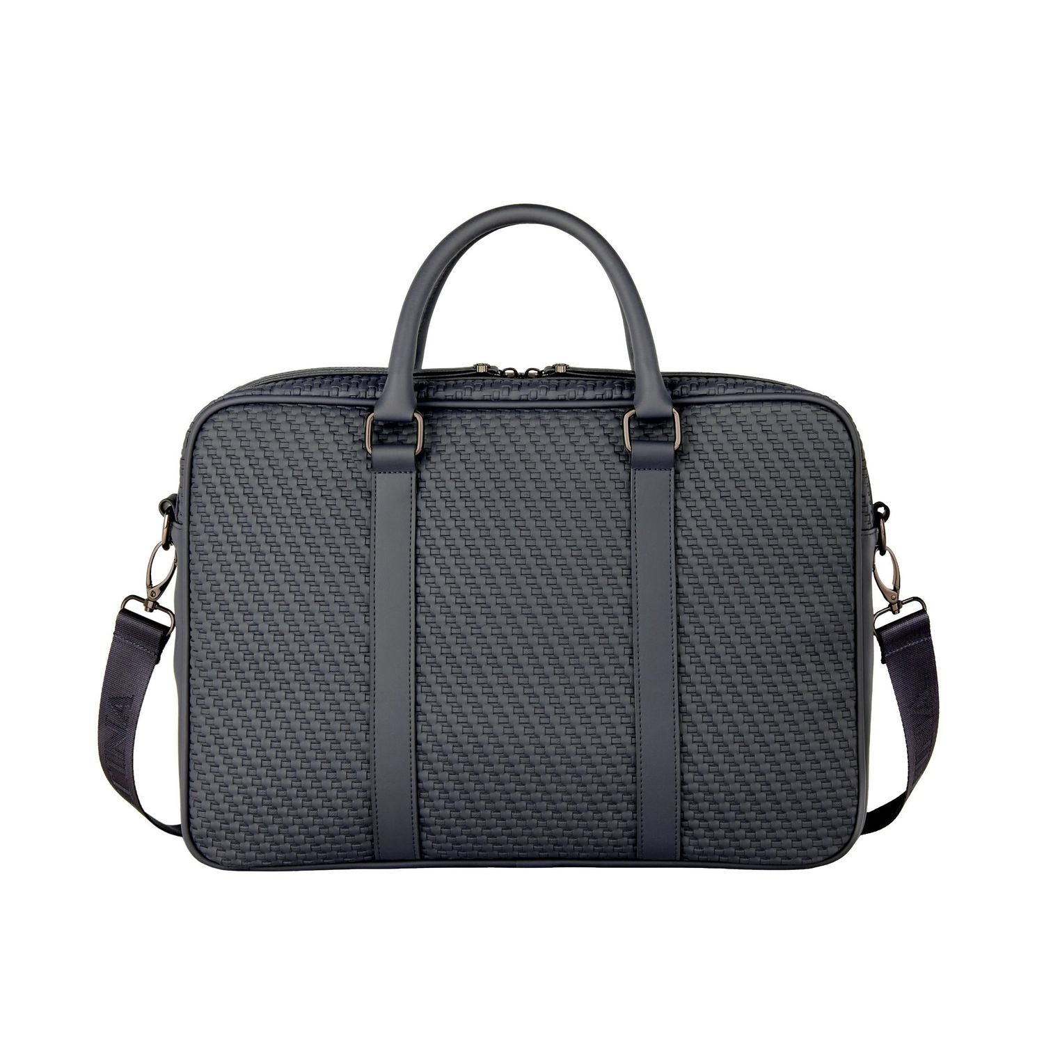 The Interlace document bag in navy brings the line?s woven-inspired texture into a classical, timeless silhouette. Crafted to resemble meticulous braiding and finished in a smooth matte, it offers a luxurious, contemporary feel enriched by signed details, including blazon-engraved zipper pullers. Inside, the organisation is ideal, featuring a dedicated laptop compartment, an inside zipped pocket, and a monogramed lining that reinforces the refined finishing. A retractable, adjustable strap signed with the logo adds comfort and practicality for daily use. Completed with sleek gun accents, the design remains resolutely chic, centered on rich texture and modern elegance.