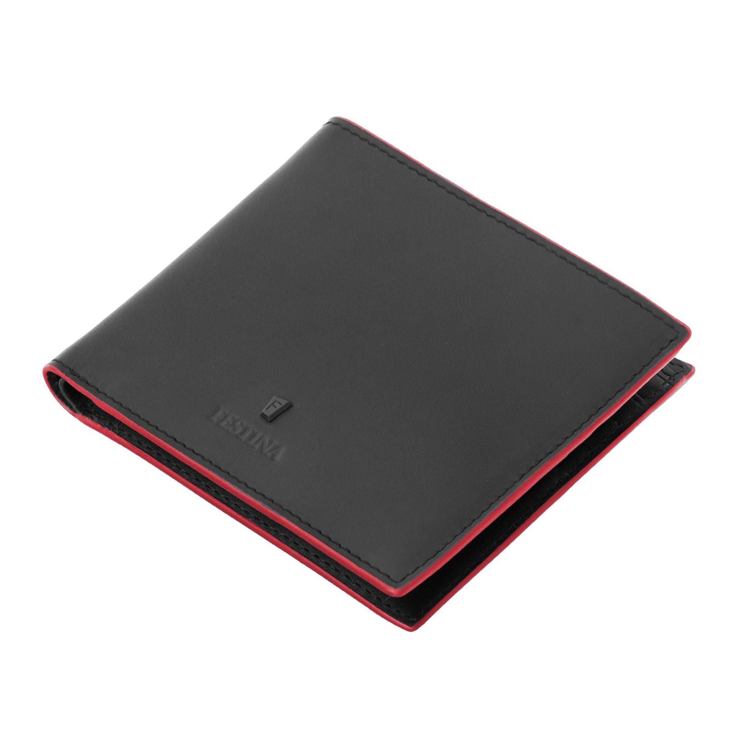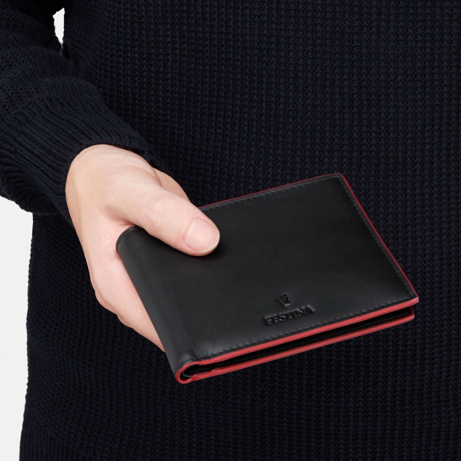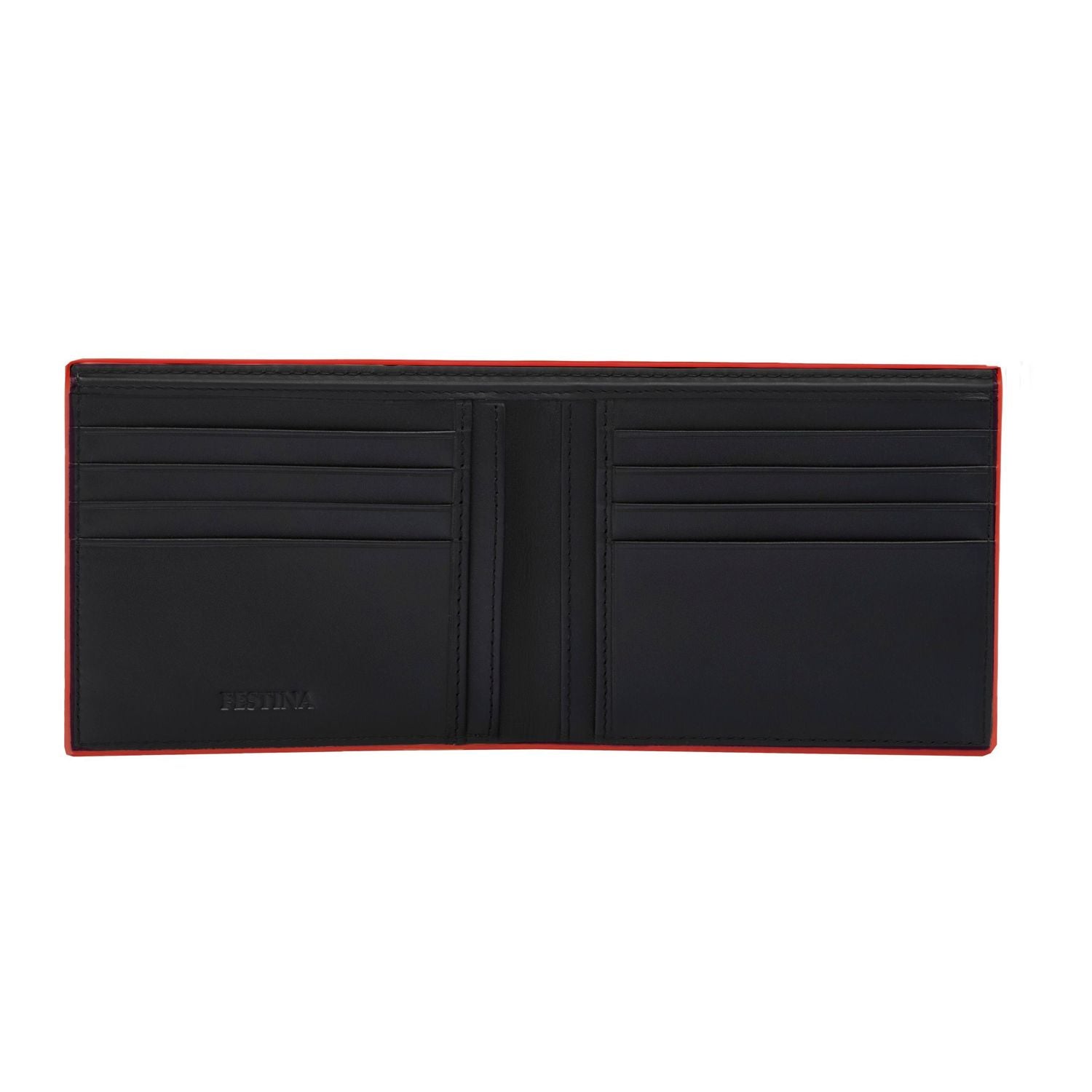 Das Black Edition Kartenetui von Festina ist ein Beweis für zeitlose Eleganz mit einem kühnen Twist. Sie ist aus sorgfältig ausgewähltem, mattschwarzem Leder gefertigt und mit dem ikonischen F-Schild in mattschwarzer Tonalität signiert. Das Design wird durch leuchtend rote Randverzierungen aufgewertet, die einen dynamischen Kontrast zu der schlichten Ästhetik bilden. Diese klassische Brieftasche mit acht Kartenfächern, vier Seitenfächern und einem großen, zweigeteilten Fach für Geldscheine bietet außergewöhnliche Funktionalität und einen raffinierten Stil. Ein echter Klassiker, neu interpretiert für die moderne Zeit.