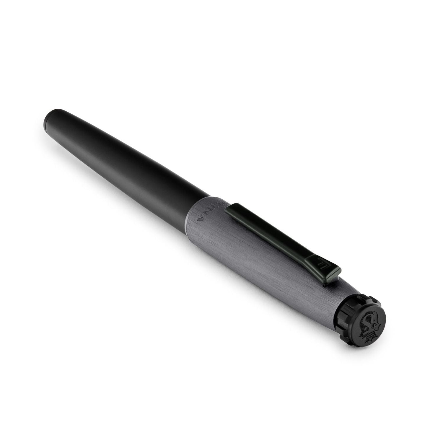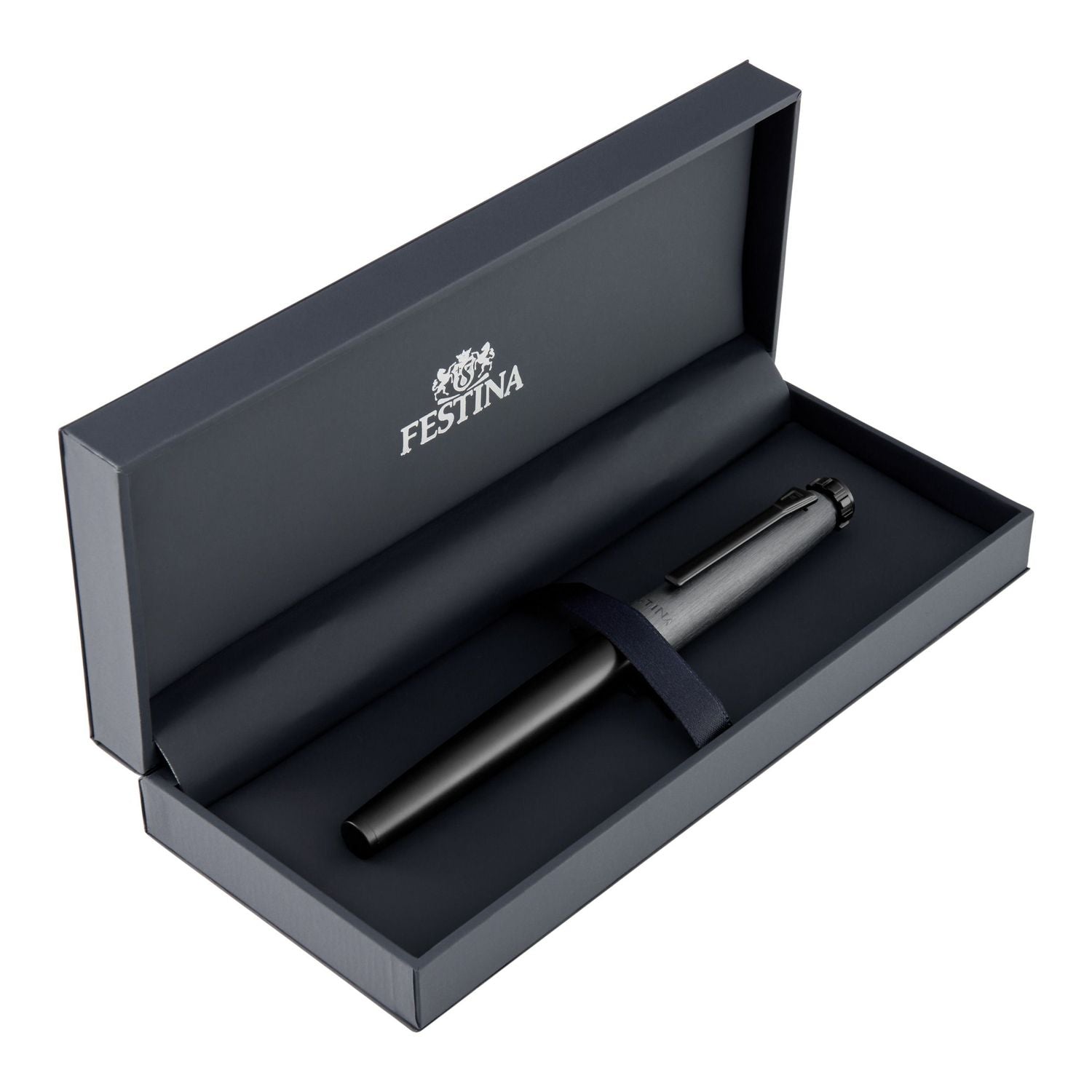 Der Chronobike Füllfederhalter mit grau gebürsteter Kappe und mattschwarzem Korpus verkörpert die Essenz der Kollektion aus Modernität und Aerodynamik. Seine schlanke, eiförmige Form erinnert an Bewegung und Eleganz, während die mattschwarzen Akzente sein raffiniertes Design unterstreichen. Kennzeichnende Details wie der vom Stoppknopf der Chronobike-Uhr inspirierte Deckel und der kühne Festina Blason unterstreichen die unverwechselbare Handwerkskunst. Abgerundet mit dem charakteristischen Clip der Serie verbindet dieser Kugelschreiber nahtlos Stil und Funktionalität und unterstreicht das Engagement von Festina für Präzision und Liebe zum Detail.