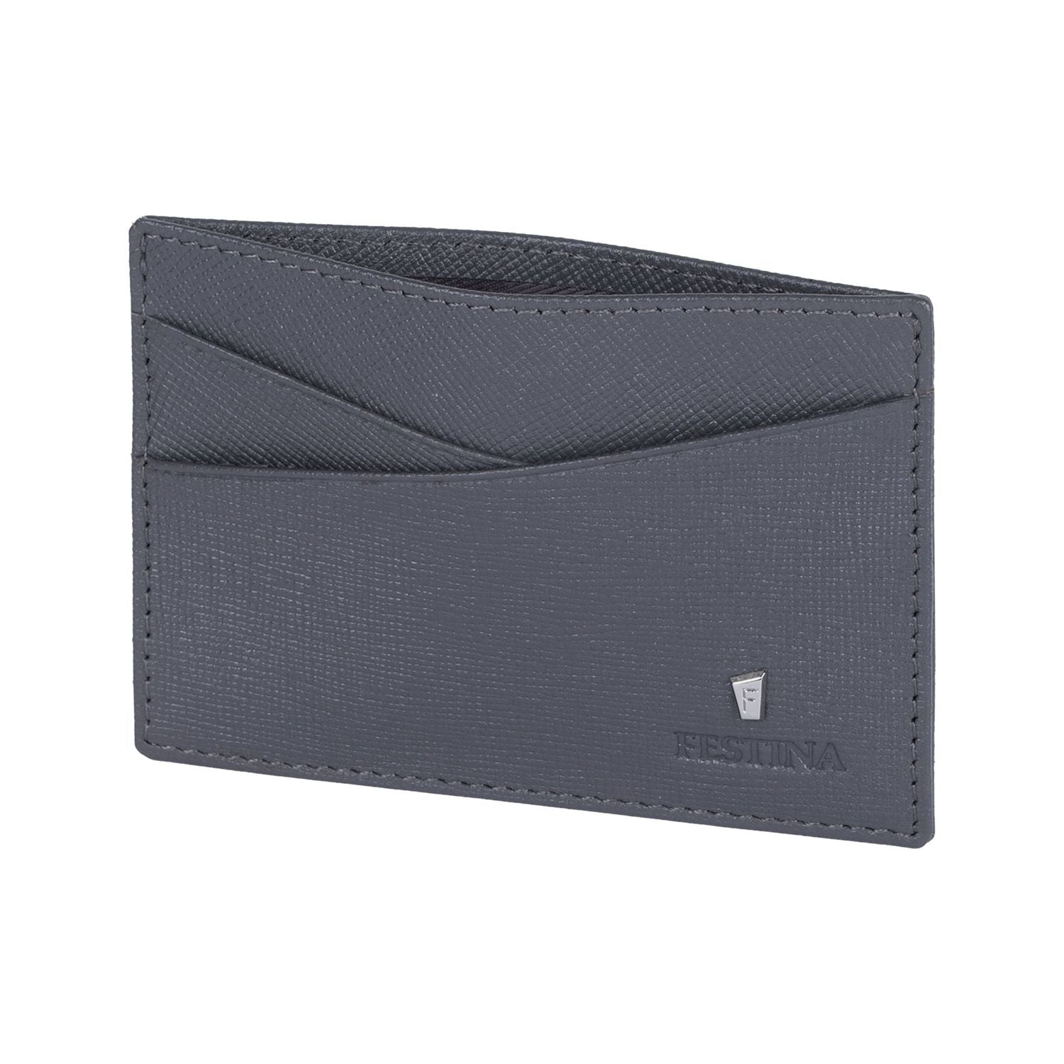 Die Kleinlederwaren aus der Linie "Chronobike" sind aus sorgfältig ausgewähltem echtem Leder mit einer Safiano Struktur gefertigt. Dieser graue Kartenhalter ist mit einem knackigen verchromten Schriftzug verziert, der ihm einen eleganten Look verleiht. Der ikonische Schriftzug, das trapezförmige F Logo, wurde auf den kleinstmöglichen Maßstab reduziert, um der Linie einen luxuriösen Touch zu verleihen und gleichzeitig eine optimale Nutzung zu ermöglichen. Es wird durch ein wunderschön geprägtes Festina Logo unterstrichen. Dieses Kartenetui ist minimalistisch, kompakt und sehr praktisch, mit 4 Seitenfächern und einem Hauptfach für die Karten an der Oberseite. Alle Kleinlederartikel von Festina sind mit einem RFID Schutzfutter ausgestattet.