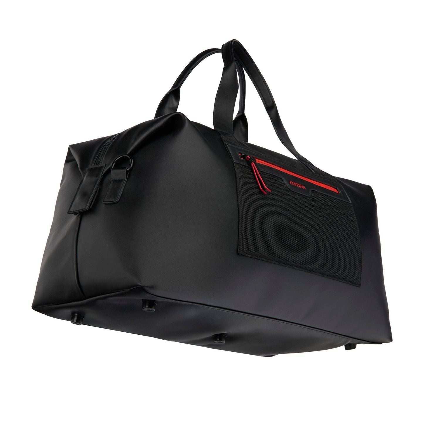 Die Wochenendtasche "Black Edition" von Festina kombiniert elegantes Design, geräumige Funktionalität und leichtes Gewicht. Gefertigt aus mattschwarzem veganem Leder mit innovativen Mesh-Akzenten, spiegelt sie die aktiv-inspirierte und moderne Ästhetik der Linie wider. Mit einem geräumigen Hauptfach, einer Reißverschlusstasche auf der Vorderseite für schnellen Zugriff und einer zusätzlichen Reißverschlusstasche auf der Innenseite bietet diese Tasche Platz für alle wichtigen Dinge und behält dabei ihr schlankes Profil bei. Leuchtend rote Akzente werden durch den Frontreißverschluss, die Kante der Reißverschlüsse und das Logo gesetzt und bilden einen auffälligen Kontrast zur minimalistischen schwarzen Basis. Diese lebendigen Details verleihen dem Design dynamische Energie und bleiben gleichzeitig Festinas Verpflichtung zu sauberer, raffinierter Handwerkskunst treu. Diese Wochenendtasche ist perfekt für Reisen oder einen aktiven Lebensstil und bietet eine nahtlose Mischung aus Praktikabilität, Modernität und Eleganz.