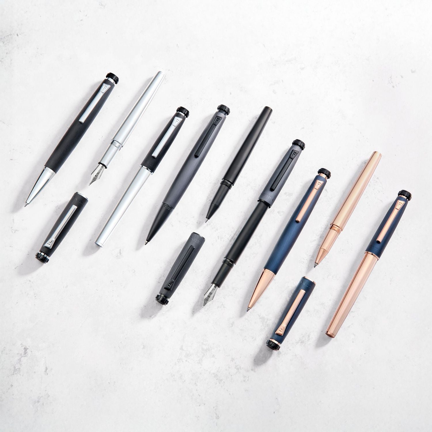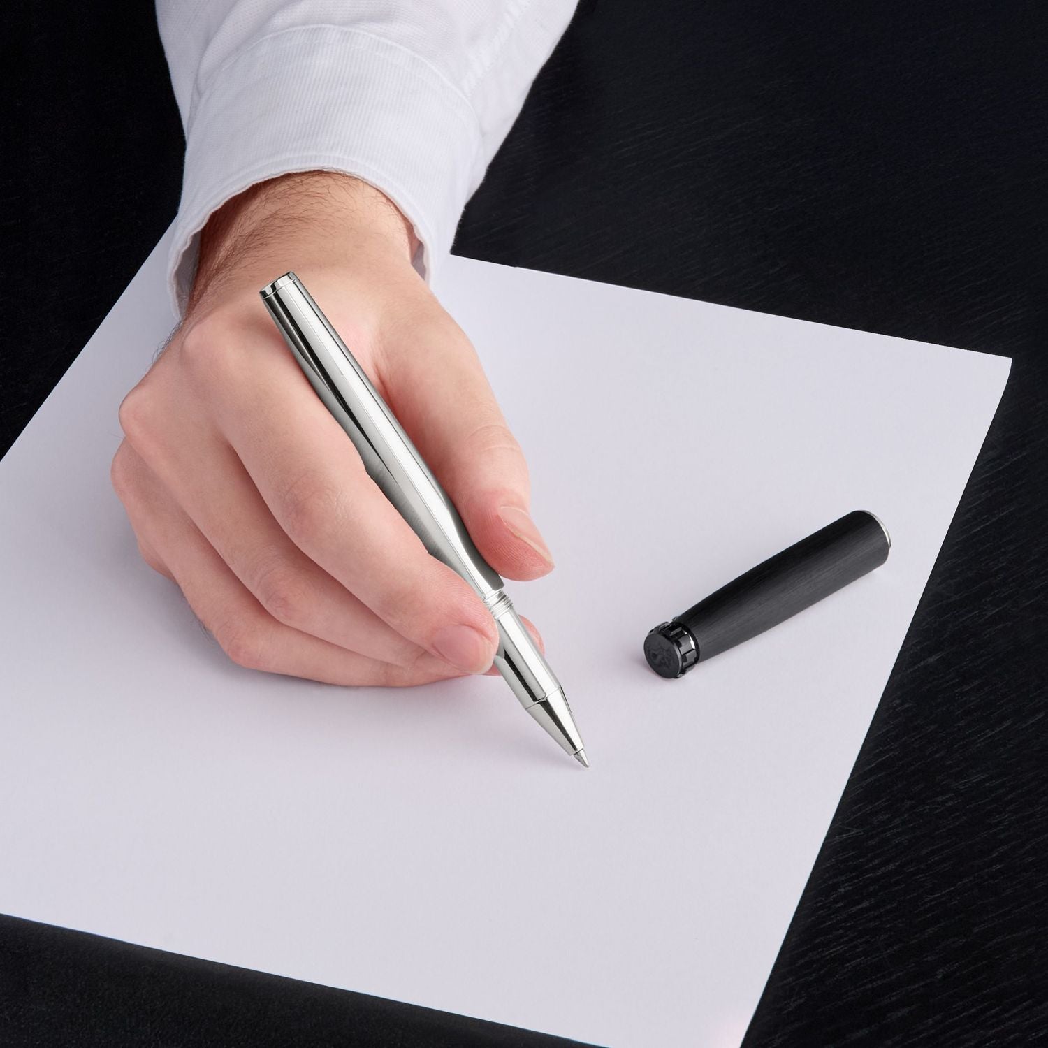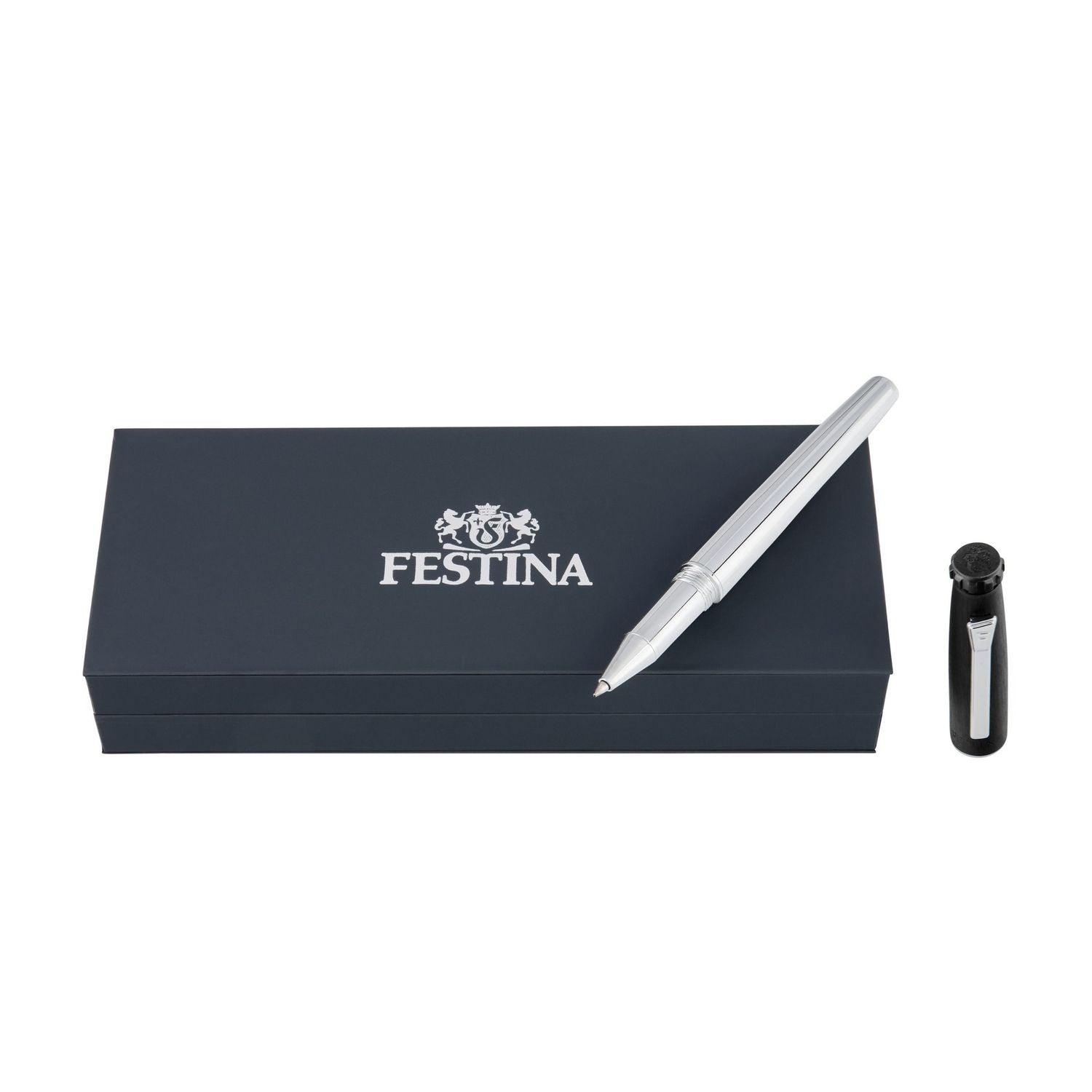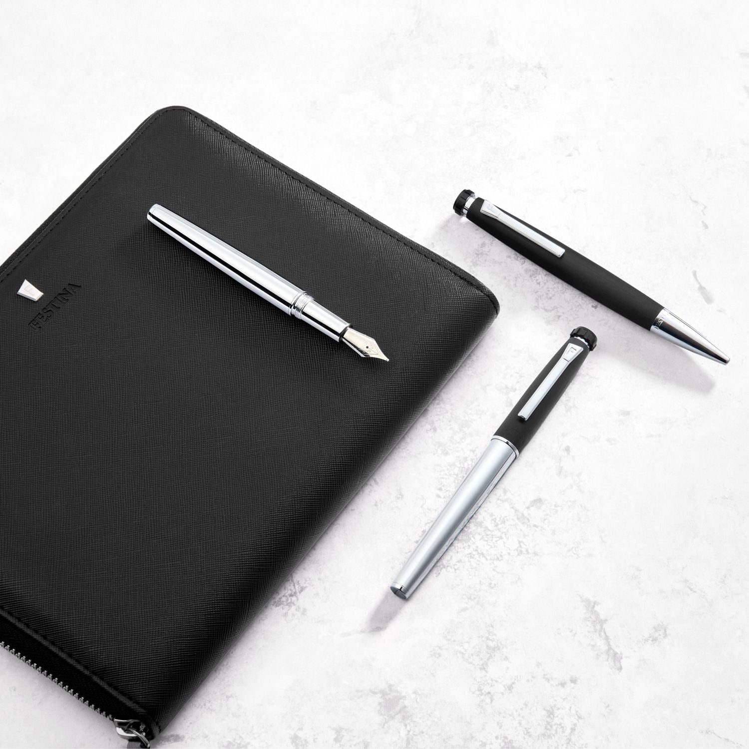 Der Chronobike-Kugelschreiber mit gebürsteter schwarzer Kappe und verchromtem Korpus verkörpert die Essenz der Kollektion aus Modernität und Aerodynamik. Seine schlanke, eiförmige Form erinnert an Bewegung und Eleganz, während die Chromakzente sein raffiniertes Design unterstreichen. Kennzeichnende Details wie der vom Stoppknopf der Chronobike-Uhr inspirierte Deckel und der kühne Festina Blason unterstreichen die unverwechselbare Handwerkskunst. Abgerundet mit dem charakteristischen Clip der Serie, verbindet dieser Kugelschreiber nahtlos Stil und Funktionalität und unterstreicht die Hingabe von Festina für Präzision und Liebe zum Detail.