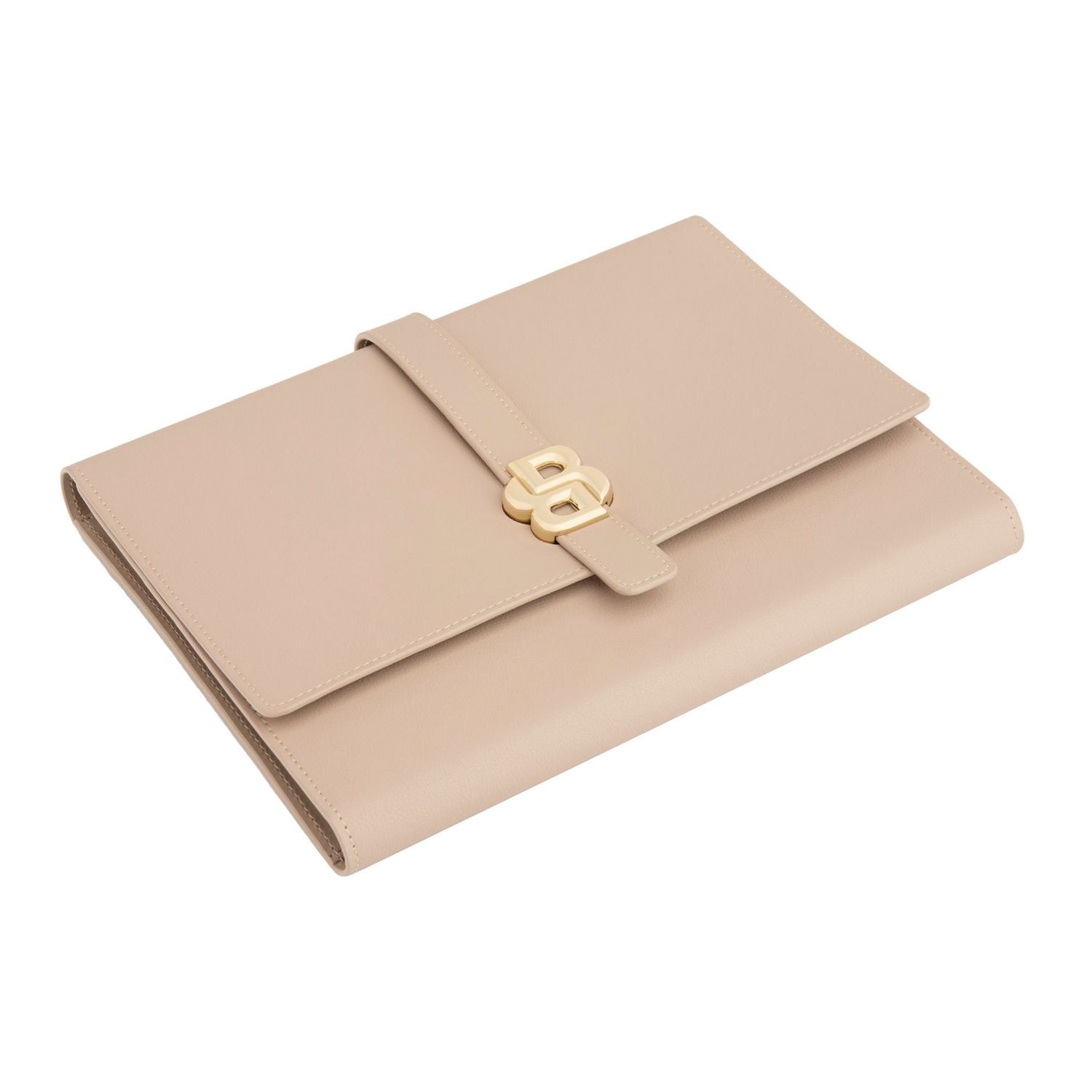Diese A5-Mappe von BOSS kombiniert einen zarten Nude-Ton mit leicht vergoldeten Akzenten für einen femininen und eleganten Look. Die übergroße Double-B-Schließe in Gold verleiht ihr einen luxuriösen Touch, während das weiche, strukturierte PU für ein raffiniertes Finish sorgt. Die warmen, neutralen Nude-Töne werden durch die goldenen Details wunderbar ergänzt und bilden zusammen mit dem femininen Arche Double B Stift und dem Schlüsselanhänger ein attraktives Geschenkset.