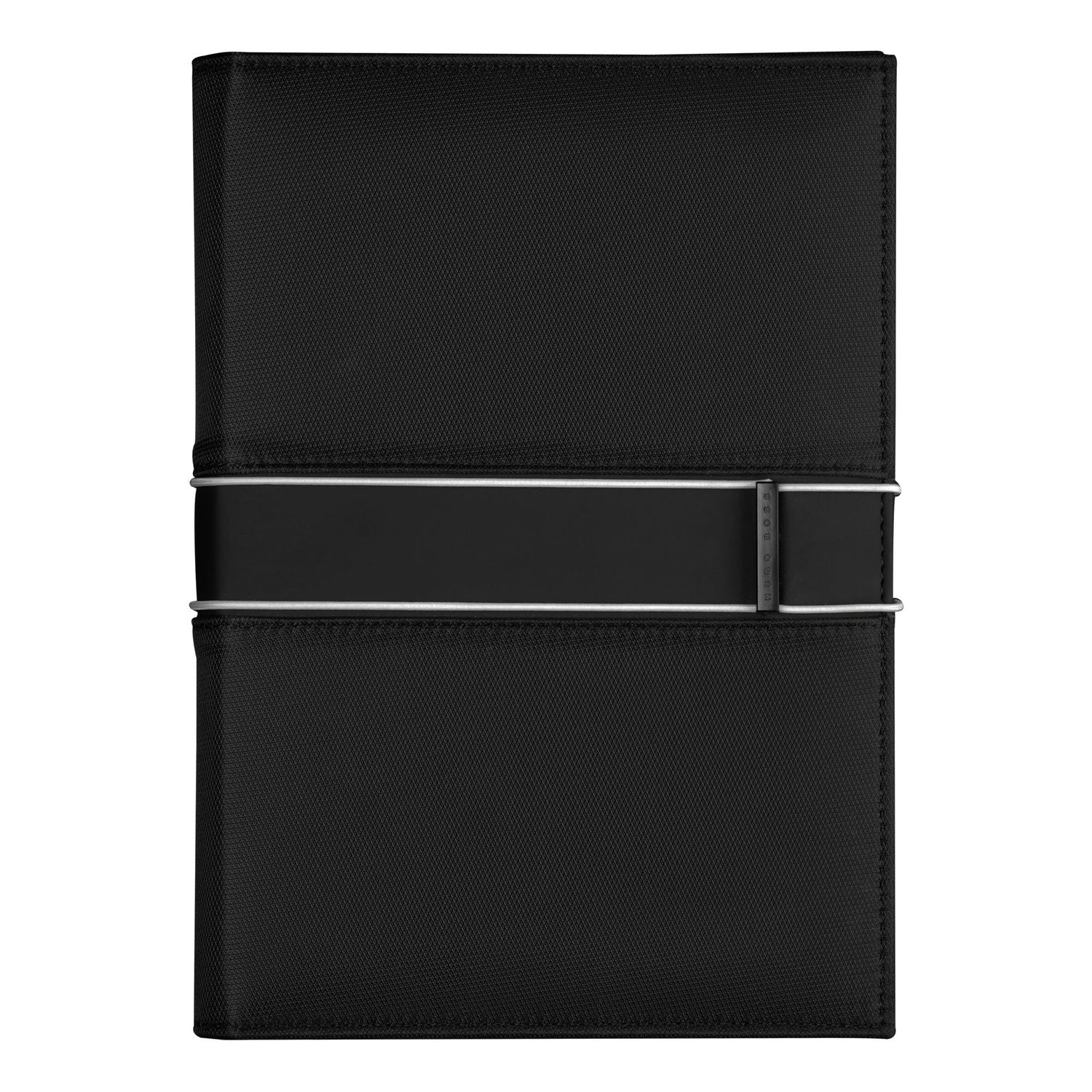Wo Sport auf modernes Leben trifft: Jedes Element dieser A5 Mappe fühlt sich topaktuell und innovativ an, vom strukturierten Nylonmaterial bis hin zu den mattschwarzen Metallakzenten. Das schlichte Schließsystem ist mit einem Gummiband ausgestattet, das als Designelement einen frischen Farbton in diese dezente und funktionale Mappe bringt. Die Mappe ist in den Farben schwarz mit weißem Gummiband, schwarz mit schwarzem Gummiband oder schwarz mit blauem Gummiband erhältlich.