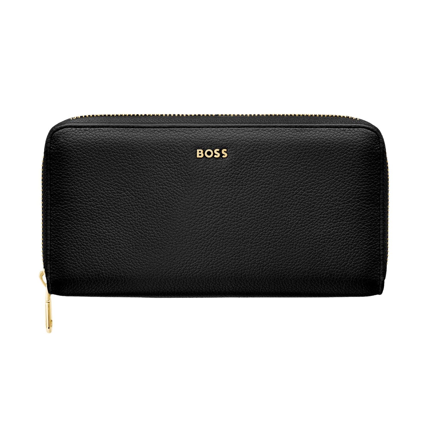 This classic zipped wallet is crafted from carefully selected grained matte PU with a soft, refined hand feel. The design is highlighted by a BOSS logo signature plate on the front and complemented by newly developed light gold?plated zippers featuring a Double B detail. Designed for everyday organization, it offers twelve card slots with six on each side, two note compartments positioned on either side, and a central zipped compartment for secure storage. Finished entirely with light gold trims for an elevated and luxurious touch, the wallet is available in a soft color palette including black, burgundy, taupe, nude, and lilac.