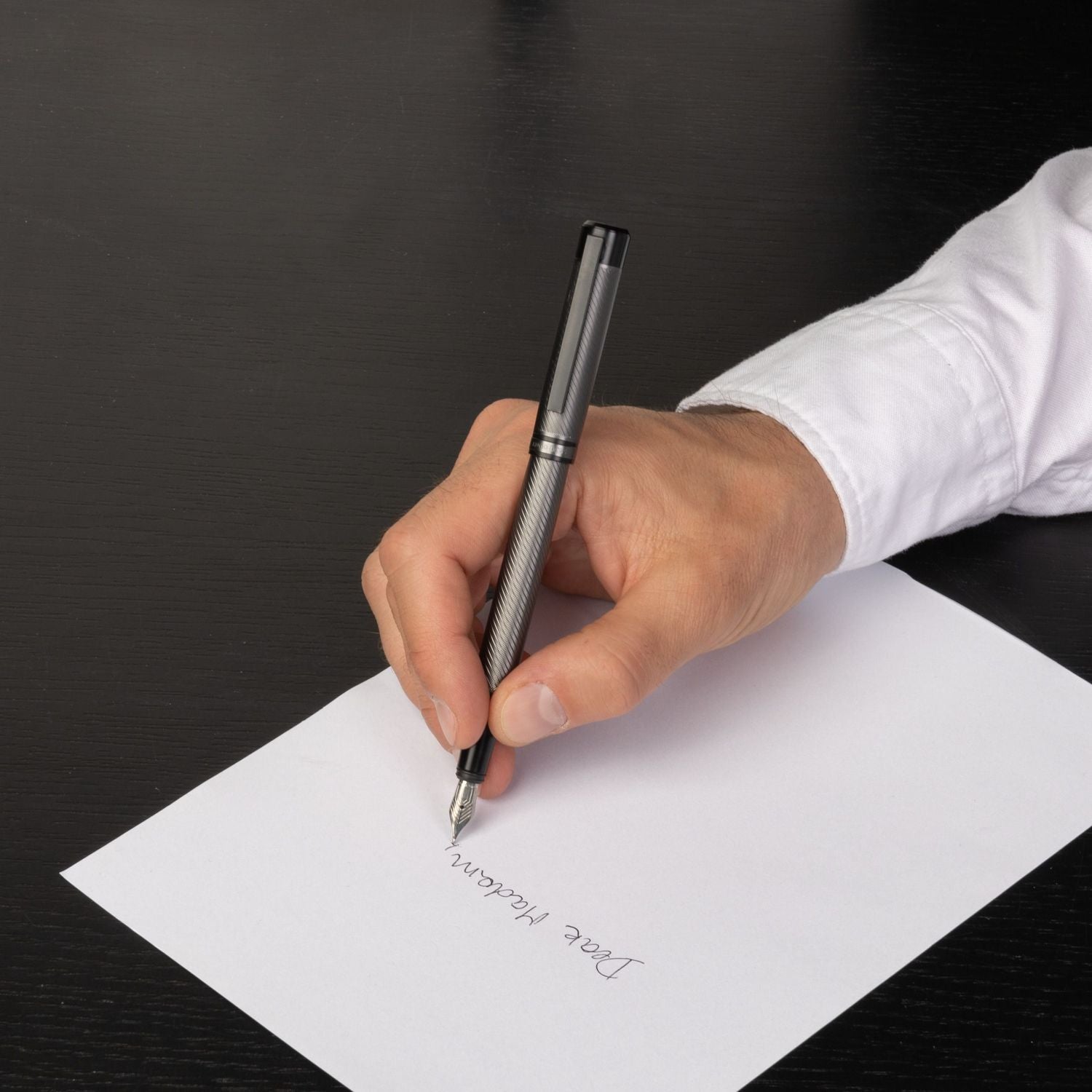 Die Filament-Linie stellt die Wichtigkeit des Verständnisses für das Bedürfnis nach Balance in den Mittelpunkt. Die perfekt proportionierte Silhouette bietet ein luxuriöses Schreiberlebnis. Das von der Industriearchitektur inspirierte Gravurmuster wird durch eine matte Metallbeschichtung modernisiert, und die schwarzen Streifen auf dem Mittelring sorgen für einen sportlichen Touch.