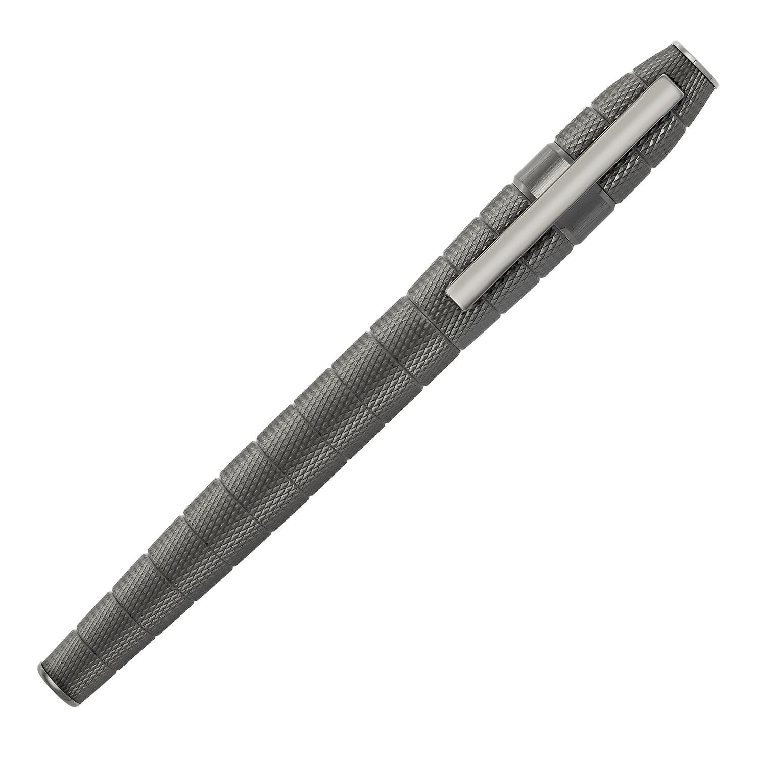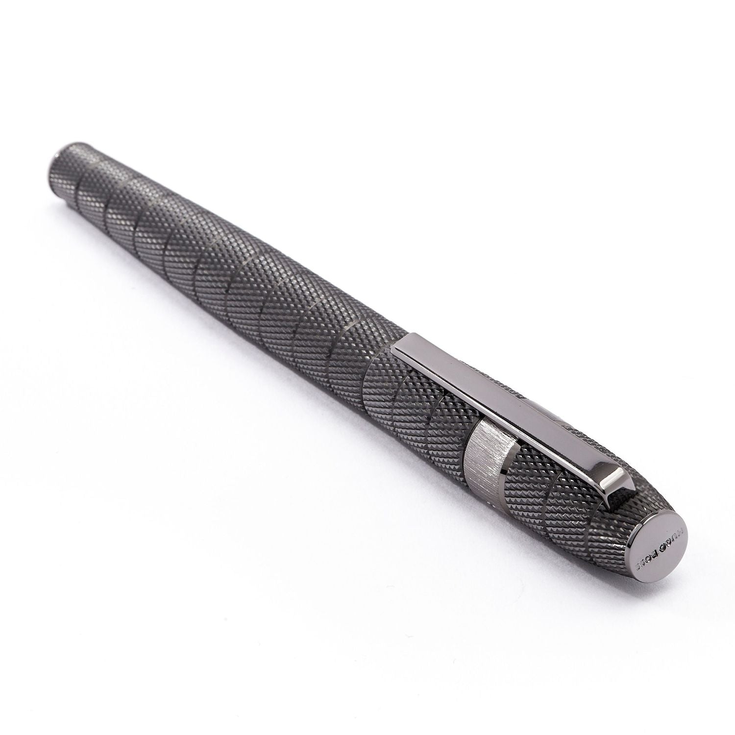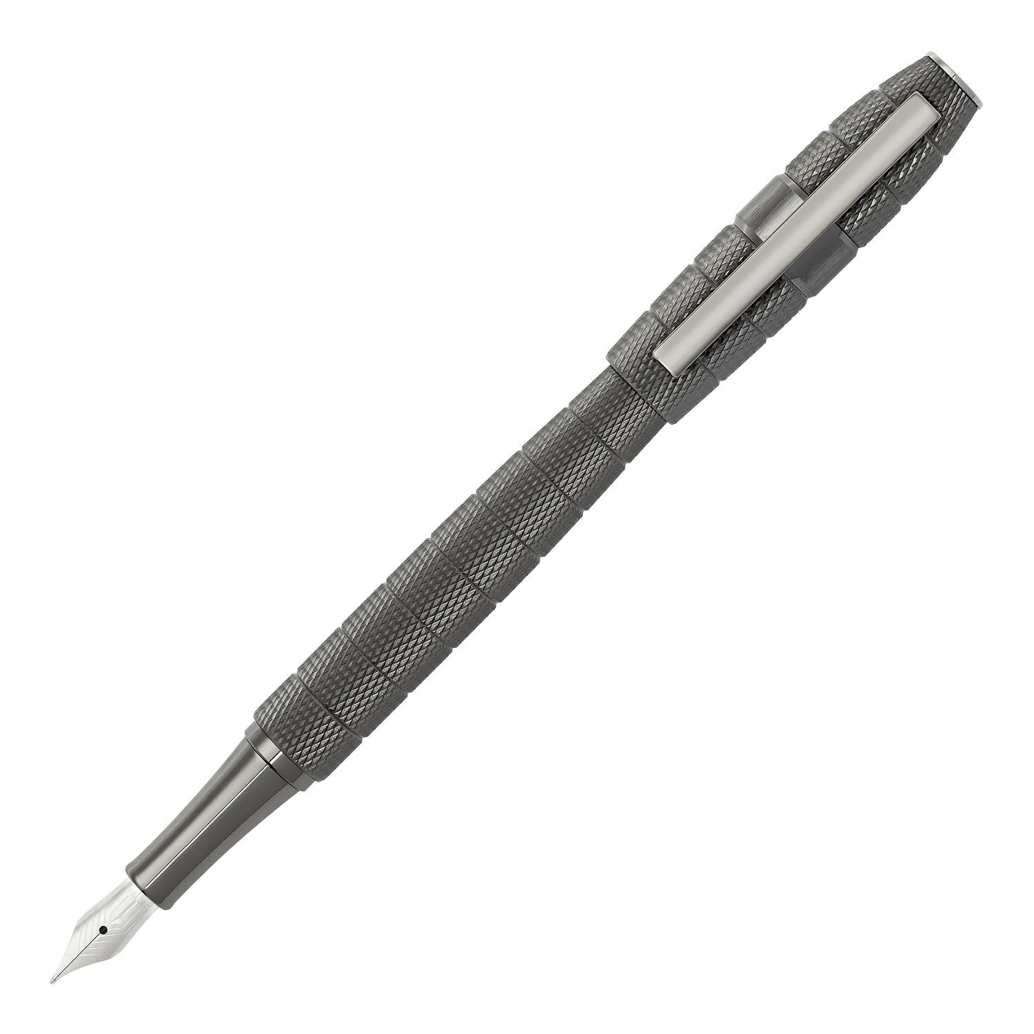 Diese ausgewogene und doch starke Form wird durch eine tiefe, matte Mustergravur aus Rotguss verziert. Die gesamte Oberfläche ist von tiefen, vertikalen Streifen durchzogen, die die Trennung zwischen oberen und unteren Läufen verwischen, und wird nur durch einen markanten gebürsteten Logo-Ring unterbrochen. Das Ergebnis ist ein hochmodernes, herausragendes Schreibgerät.