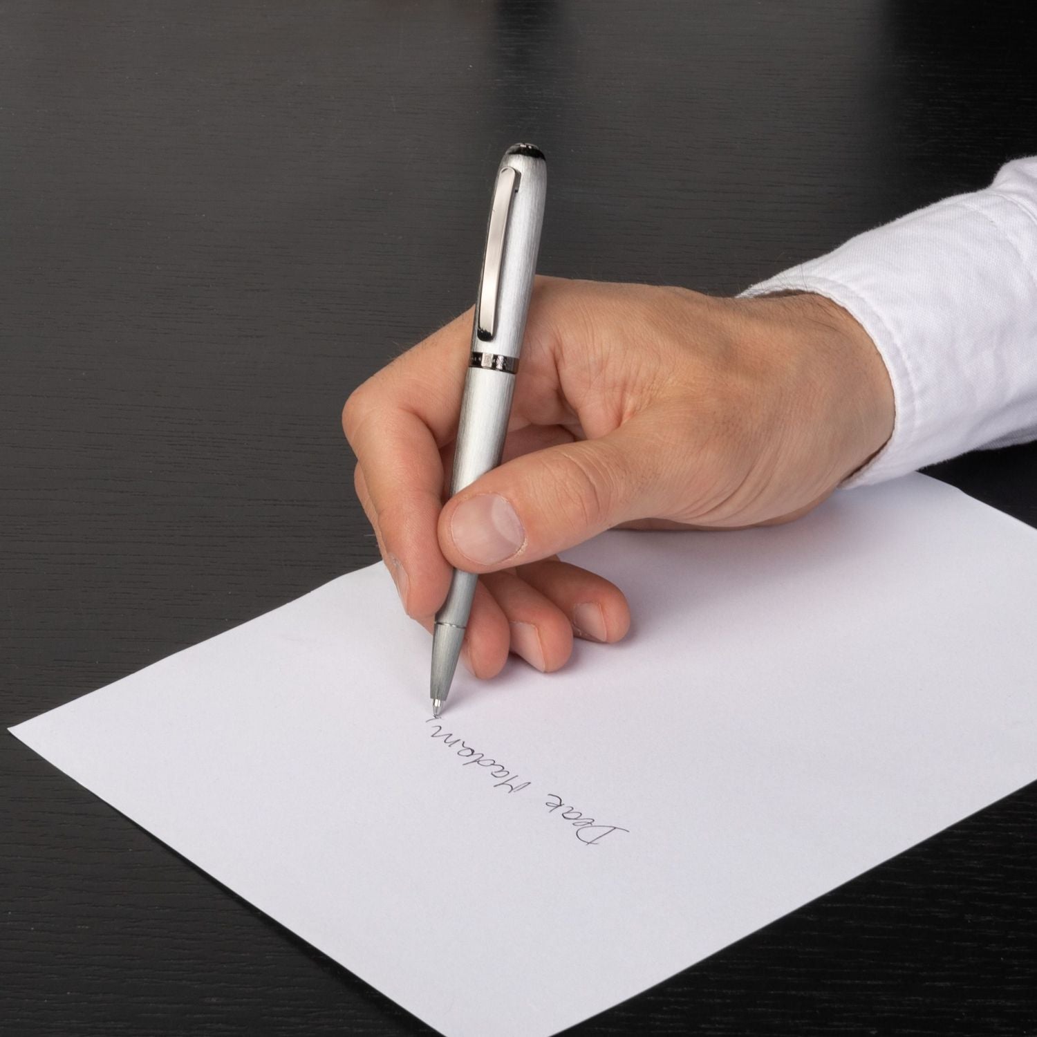 Der Konturenstift mit seinem dynamischen und ausgewogenen Rahmen wird mit raffinierten gebürsteten Oberflächen neu erfunden. Dieser neue Ansatz ermöglicht eine Reihe von schönen, subtilen Farben, die die Grundlage jeder modernen Garderobe bilden. Diese verchromte Version mit Pistolenverzierungen ist wirklich modern und minimalistisch.
