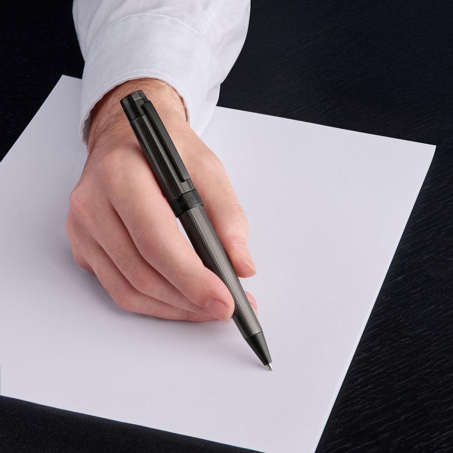 Inspiriert von einer modernisierten, leicht überdimensionierten Interpretation einer zeitlosen Silhouette, wurde dieser Eclat-Stift für echte Schreibbegeisterte entworfen. Er zeichnet sich durch ein luxuriöses, kompliziertes Rautenmuster aus, das mit einem reichhaltigen Lack für ein angenehmes Handgefühl veredelt und durch klassische, glatte Metallakzente ergänzt wird. Dieses Schreibgerät ist sowohl ein zeitloser Klassiker als auch ein gewagtes Statement.