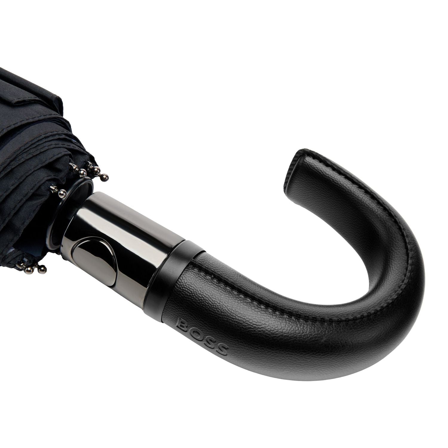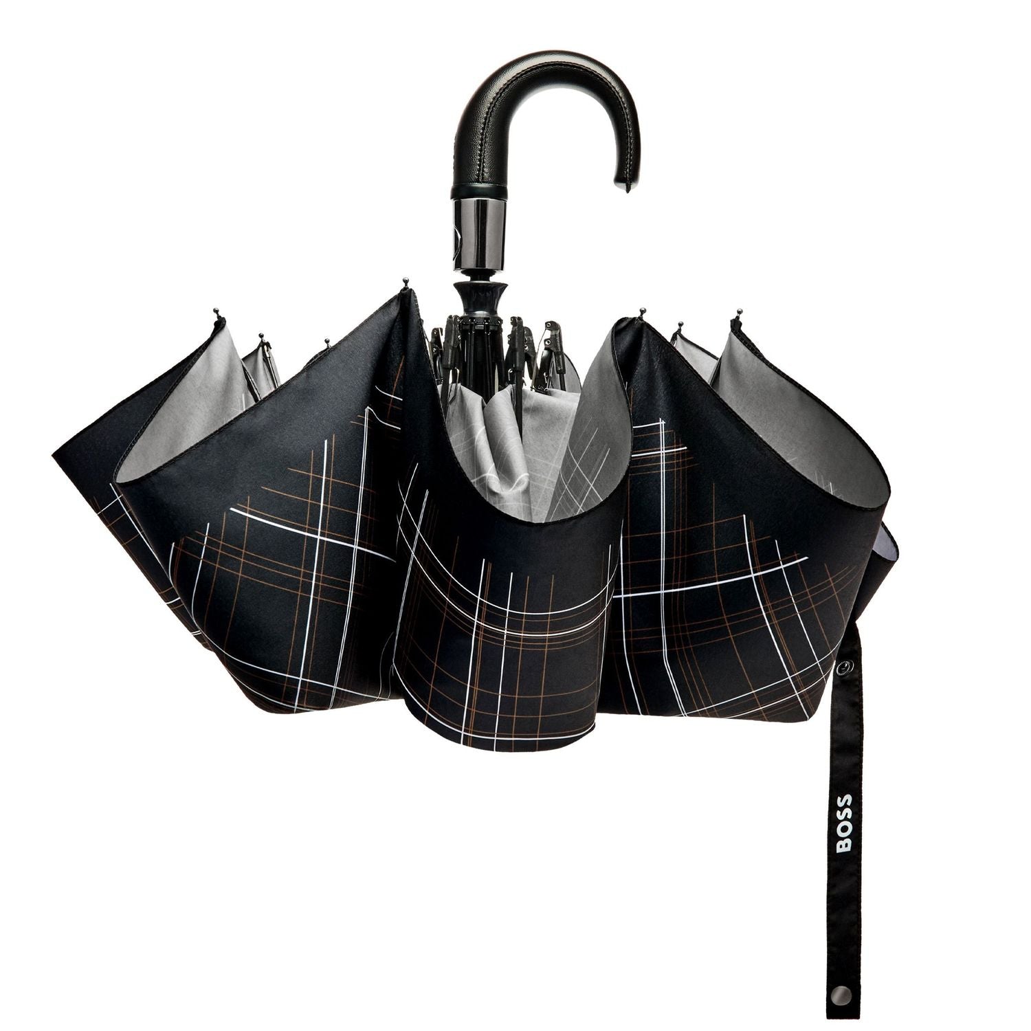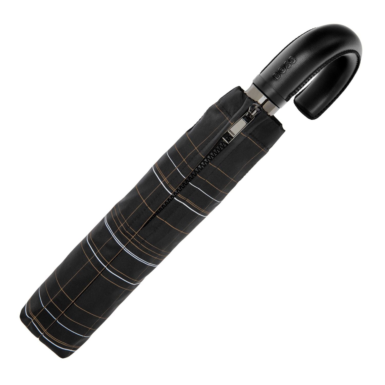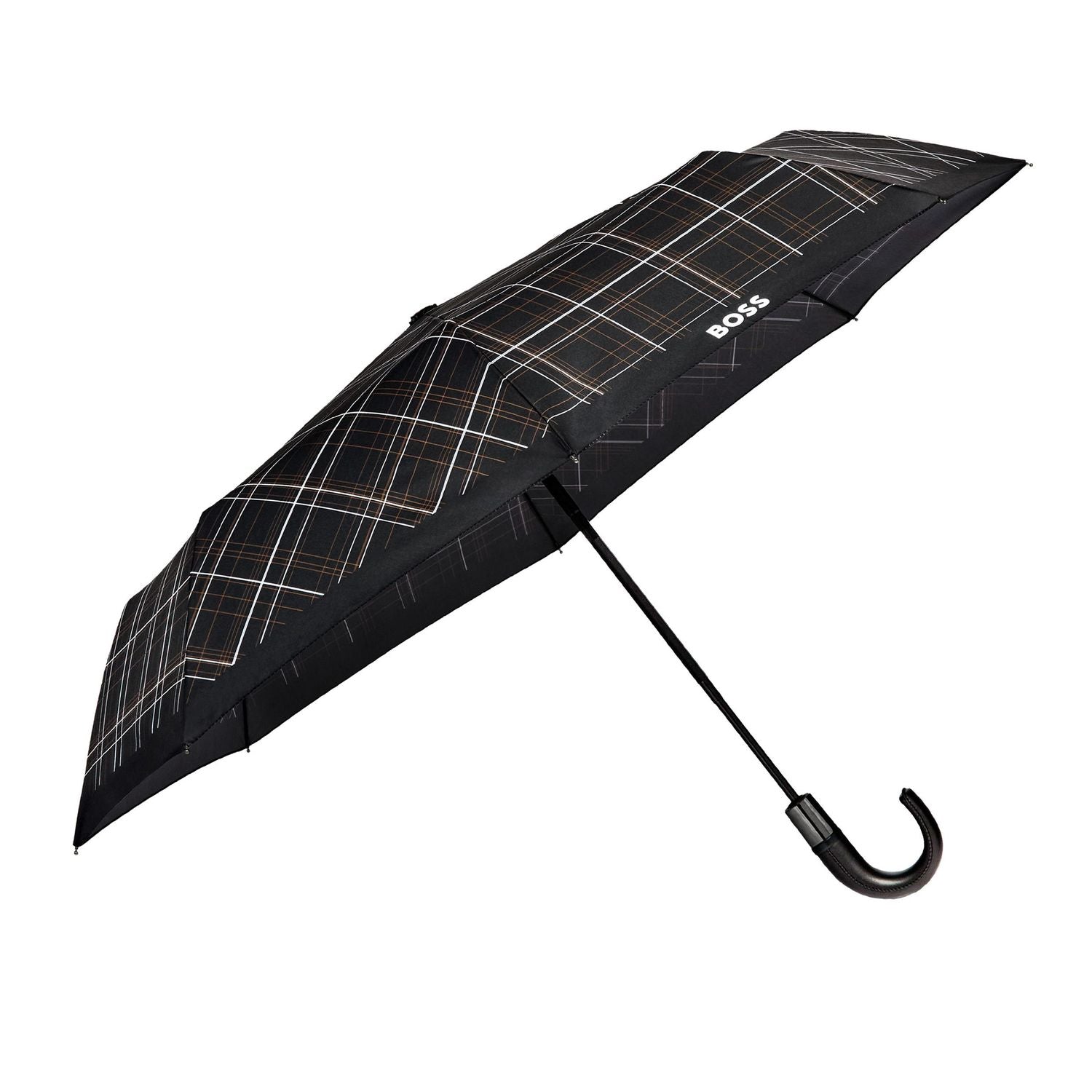 The Checkered umbrella features a striking print borrowed from the BOSS runway, turning an everyday essential into a true fashion statement through its graphic take on the brand?s iconic colors. This pocket size is practical and compact. Presented exclusively in black, it comes with a refined handle wrapped in a leatherlike material and is signed with an embossed BOSS logo for an elevated finish.