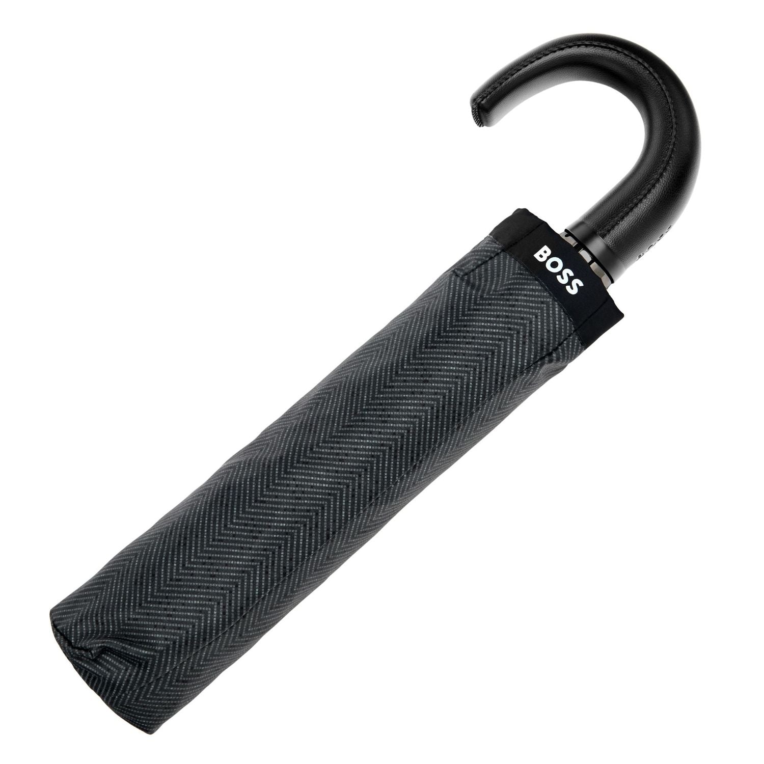The Chevron umbrella introduces a fresh interpretation of the herringbone motif rooted in BOSS history, subtly echoing the brand?s suiting tradition while keeping the design minimal and masculine with a modern twist. This pocket size is compact & practical, it features a handle luxuriously wrapped in a leatherlike material with BOSS embossing, while all trims in deep gun add to its understated, elevated feel.