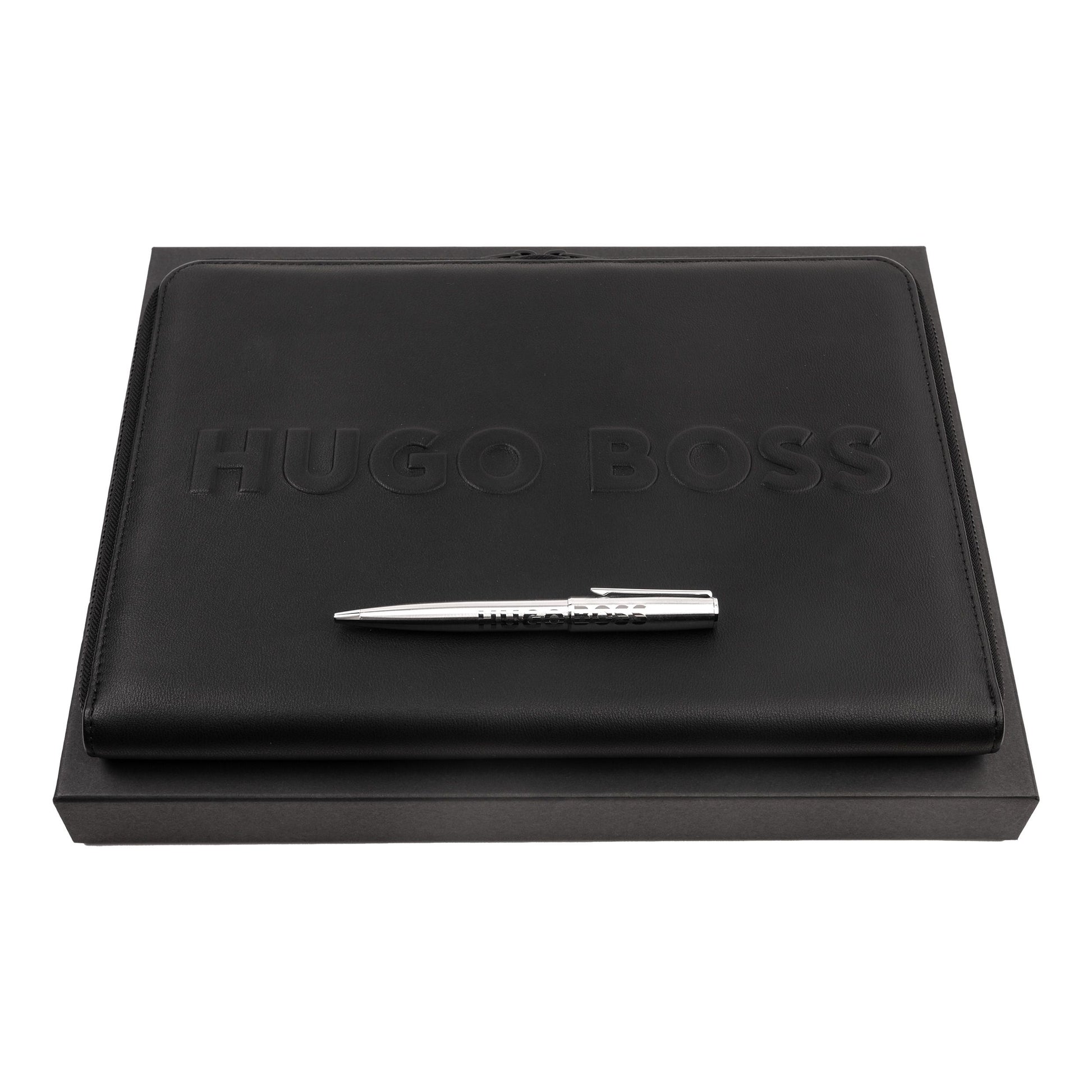 Hugo Boss Schreibset LABEL Chrome | Kugelschreiber und A4 Schreibmappe