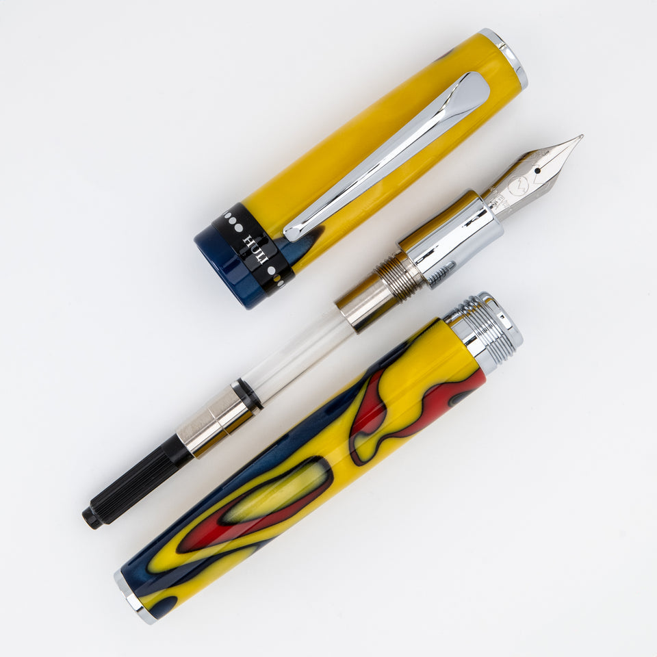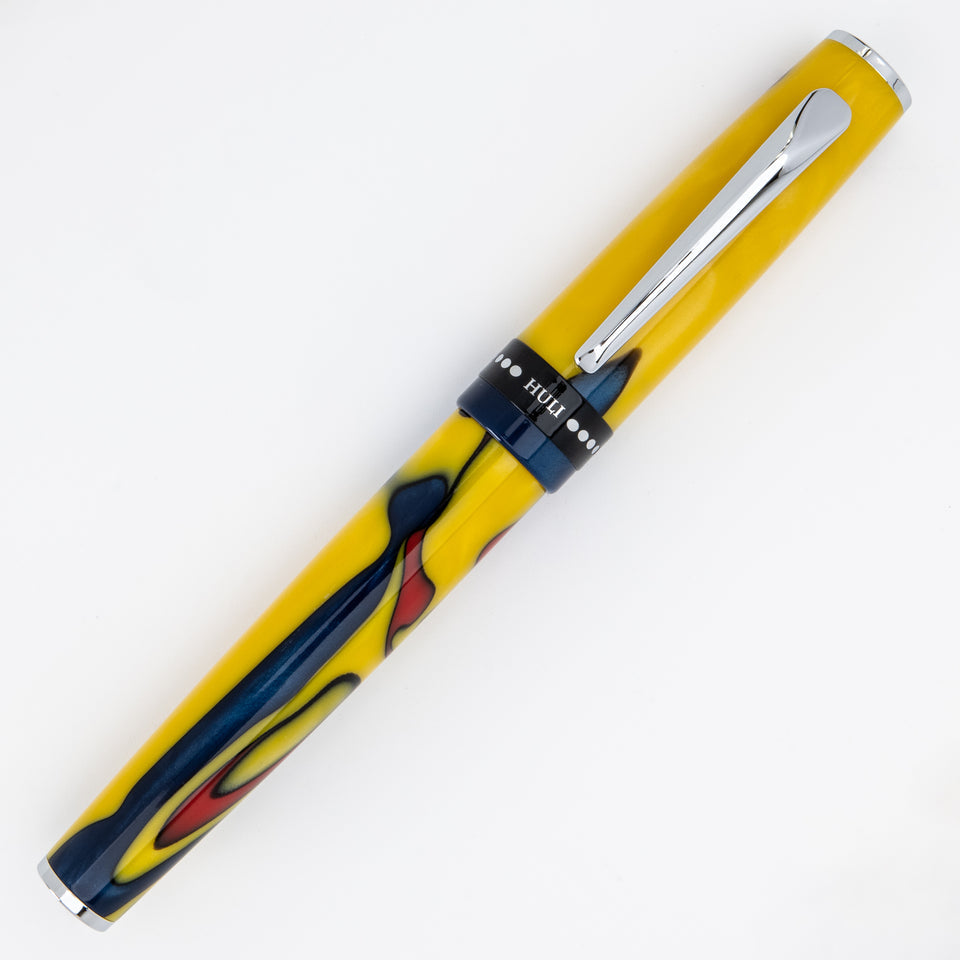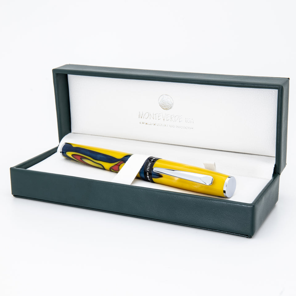 Inspiriert von den kraftvollen Traditionen des Huli-Stammes in Papua-Neuguinea, ist der Monteverde USA People of the World Huli Füllfederhalter ein Symbol kultureller Stärke und Identität. Das markante gelb-rot marmorierte Harz erinnert an traditionelle Körperbemalungen und spirituelle „Damia“-Symbole, die in Stammeszeremonien verwendet werden. Ausgestattet mit einer in Deutschland gefertigten JoWo-Edelstahlfeder, bietet er ein seidenweiches Schreibgefühl – ideal für alltägliche Notizen und wertvolle Erinnerungsstücke. Polierte Chromapplikationen und ein ausgewogener Korpus verleihen ihm Eleganz und Kontrolle. Der Füllfederhalter kann mit einer Tintenpatrone oder dem mitgelieferten Konverter befüllt werden und wird in einer luxuriösen Geschenkbox geliefert. Für alle, die kulturelles Storytelling, Stammesdesign und hochwertige Handwerkskunst schätzen, ist dieser Füllfederhalter ein ausdrucksstarkes Schreibgerät und ein zutiefst bedeutungsvolles Geschenk.
