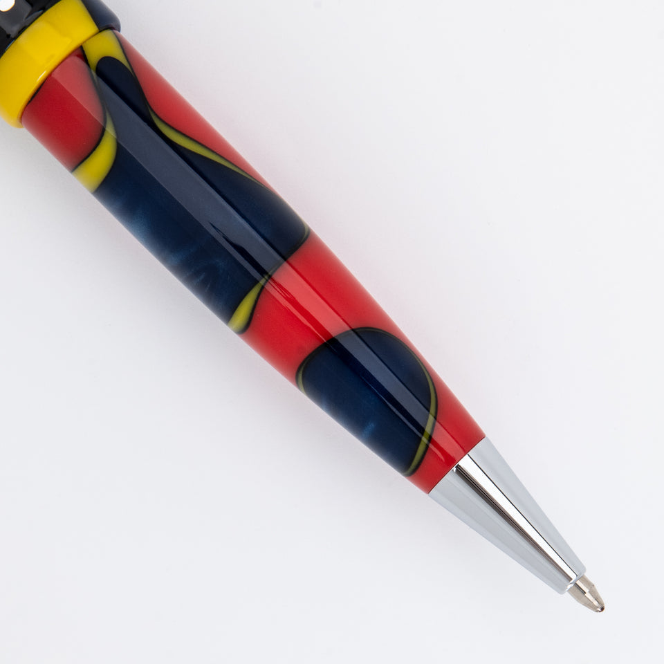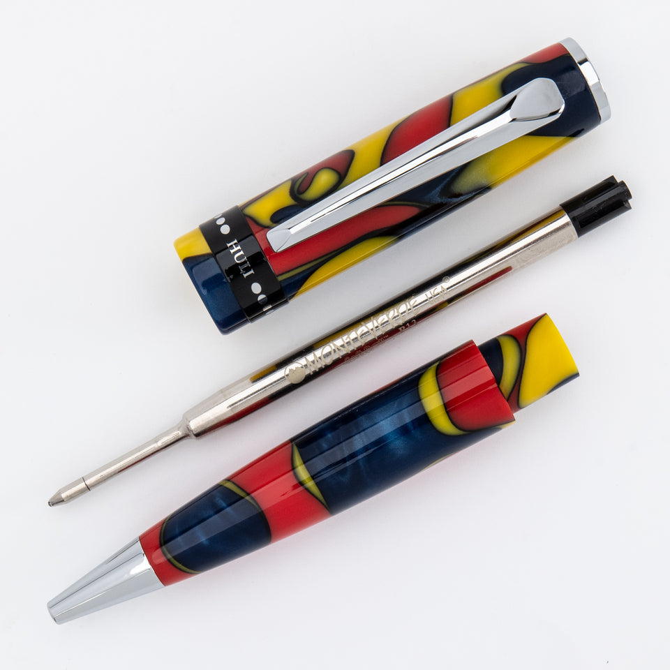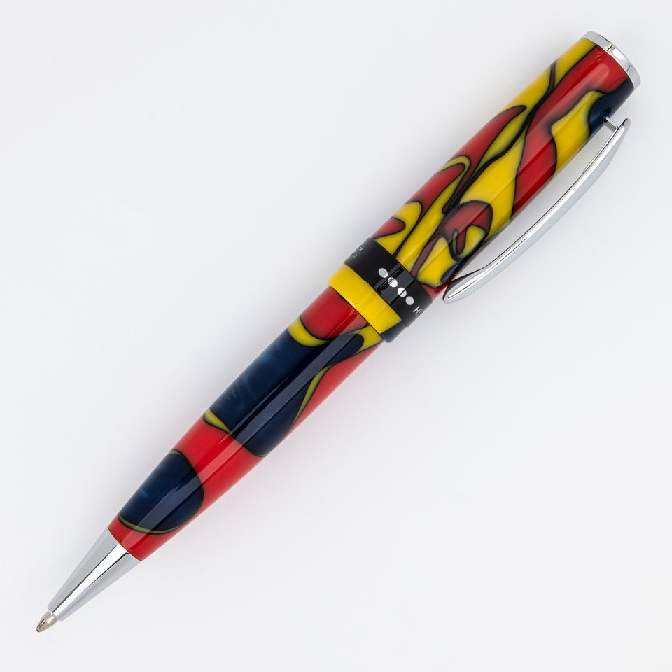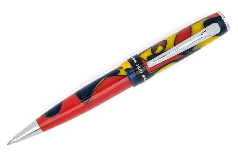 Der Monteverde USA People of the World Huli Kugelschreiber zelebriert die zeremonielle Kraft des Huli-Stammes aus Papua-Neuguinea. Die kräftigen Harzfarben spiegeln traditionelle Gesichtsbemalung und Körperkunst wider, die ihre Verbundenheit mit spirituellen Ritualen und der Natur zum Ausdruck bringen. Ausgestattet mit einem Drehmechanismus und nachfüllbar mit Monteverde- oder Parker-kompatiblen Kugelschreiberminen, vereint dieser Stift Funktionalität mit erzählerischem Flair. Seine polierten Chromverzierungen verleihen ihm moderne Eleganz, während die ausgewogene Form für angenehmen Schreibkomfort sorgt. Ideal für alle, die Wert auf ausdrucksstarkes Design, kulturelle Tiefe und ein sanftes Schreibgefühl legen – dieser Stift wird in einer edlen Geschenkbox geliefert. Perfekt als globales Statement-Piece, als origineller Gesprächsanlass oder als bedeutungsvolles Geschenk für Schriftsteller, Künstler und Abenteurer.